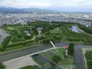 タワーに登り、五稜郭を見下ろします。